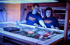 We started as hobbyists with small nano-systems and quickly found we had a “wet” thumbs. And so about 5 years ago, we began Unlimited Color Corals.
