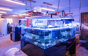 We have a small building with it’s own cooling and heating system. Inside that we run 5 independent systems totaling ~1,600 gallons. We prefer using t5’s and metal halides